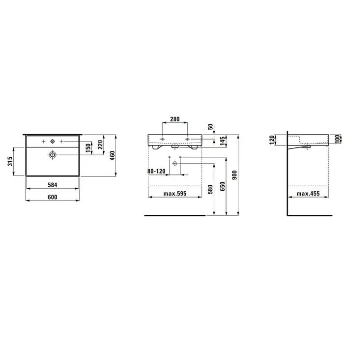 Laufen Kartell Раковина 600х460х120мм без отв. под смеситель, цвет: белый матовый
