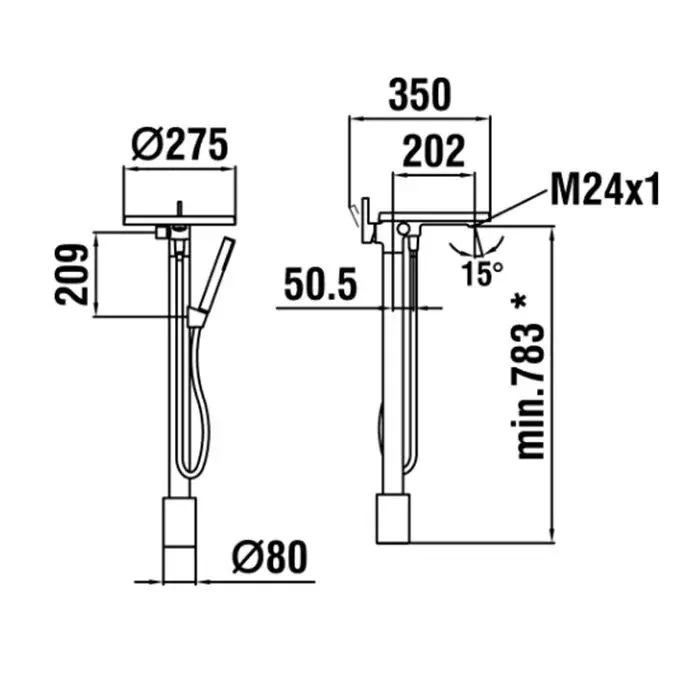 Laufen Kartell Смеситель для ванны на 1 отверстие, напольный, цвет: хром 3.2133.1.004.121.1