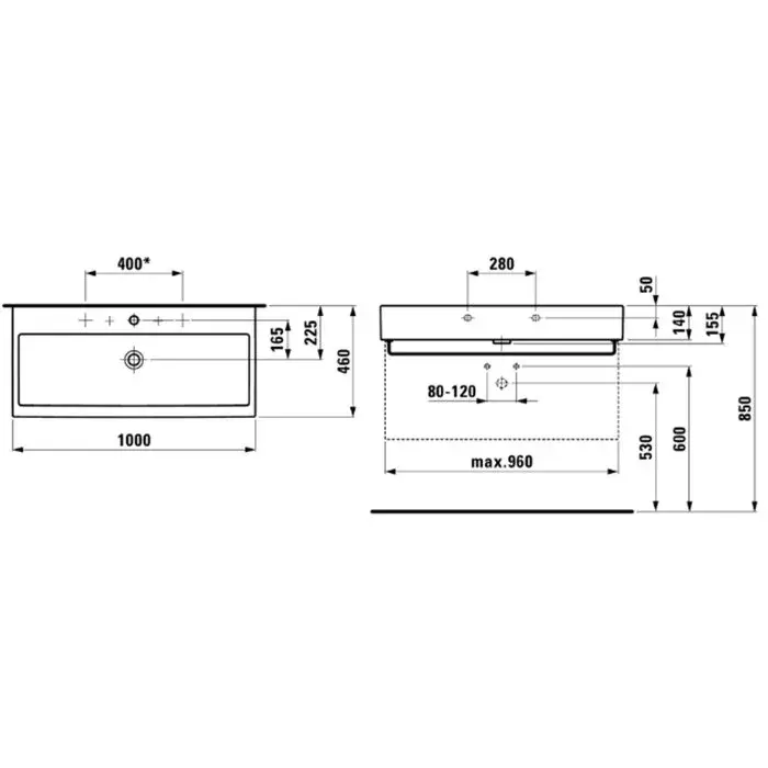 Laufen Living City Раковина 100х46хh14 см, с 2 отв., под смеситель, цвет: белый 8.1843.7.000.107.1