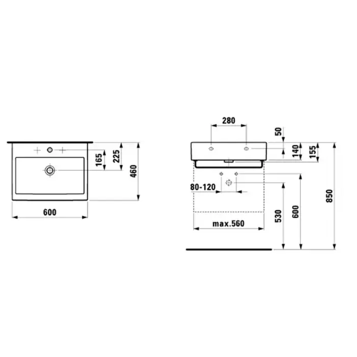 Laufen Living City Раковина 60х46хh14 см, с 3 отв., под смеситель, цвет: белый 8.1743.3.000.108.1