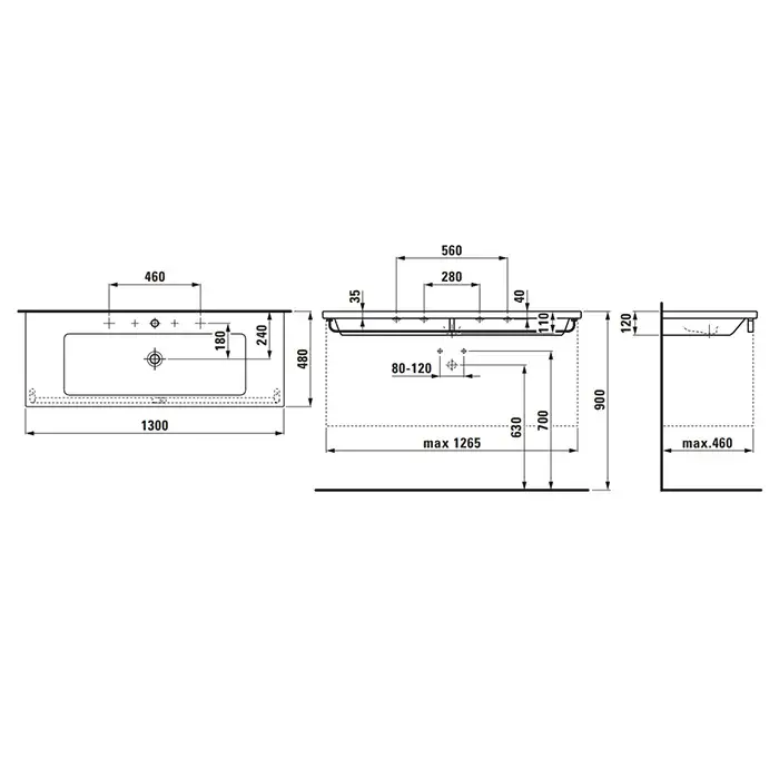 Laufen Living City Раковина-столешница 130х48 см, цвет: белый 8.1643.6.000.107.1