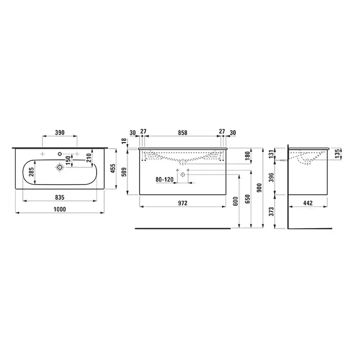 Laufen Lua КОМПЛЕКТ: база под раковину, 1000х455хh527 мм, с раковиной 1000 мм с 1 отв для смесит., 2 ящика, вкл.органайзер для ящиков, белый матовый