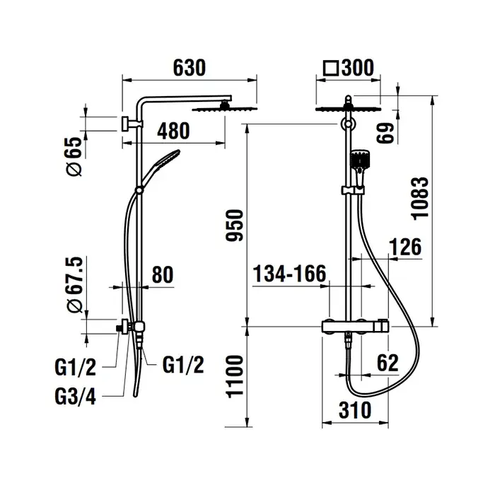 Laufen New Cityplus Душевая стойка с верхним душем, цвет: хром 3.3375.7.004.536.1