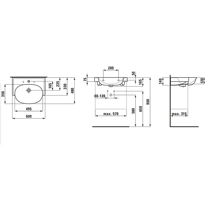 Laufen New Classic Раковина 60х48хh7,5 см, с 3 отв., под смеситель, цвет: белый 8.1385.3.400.108.1