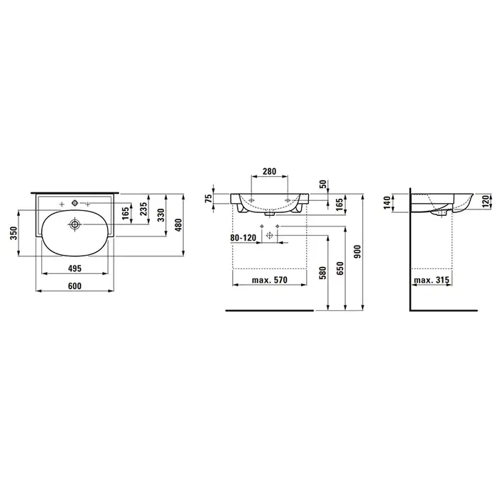 Laufen New Classic Раковина 60х48хh7,5 см, с 3 отв., под смеситель, цвет: белый 8.1385.3.400.158.1