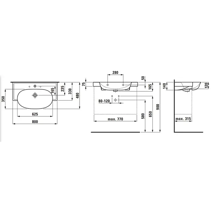 Laufen New Classic Раковина 80х48хh7,5 см, с 3 отв., под смеситель, цвет: белый 8.1385.5.400.158.1