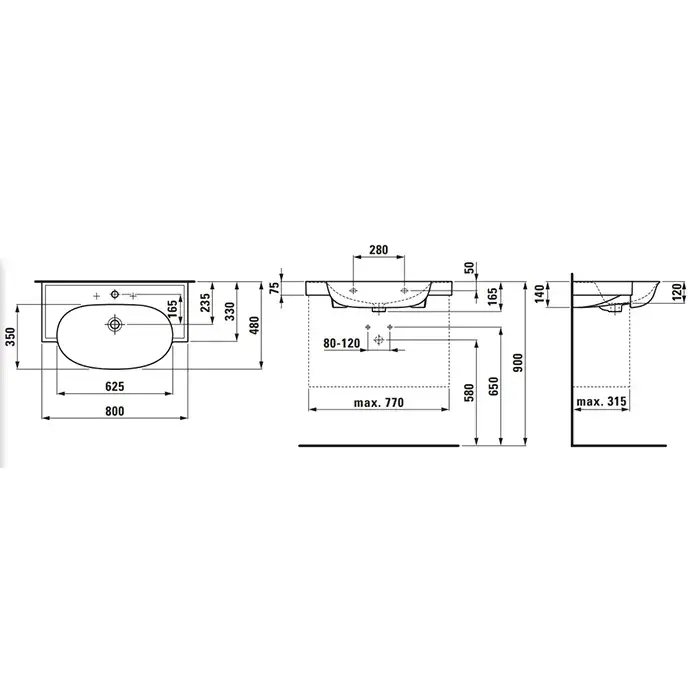 Laufen New Classic Раковина 80х48хh7,5 см, с 3 отв., под смеситель, цвет: белый 8.1385.5.000.108.1