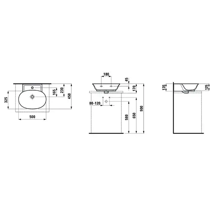 Laufen New Classic Раковина-мини накл. 50х45хh13,5 см, без отв, цвет белый мат. 8.1685.2.757.109.1