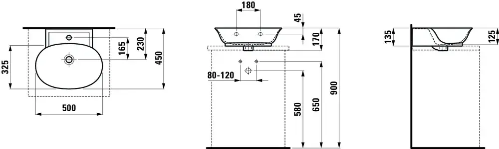 Laufen New Classic Раковина-мини накладная 50х45хh13,5 см, с покр.LCC, цвет Белый 8.1685.2.400.104.1