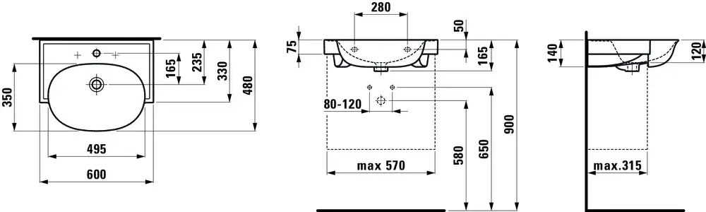 Laufen New Classic Раковина накладная 60х48хh16,5 cм, с 1 отв., цвет белый 8.1385.3.400.104.1