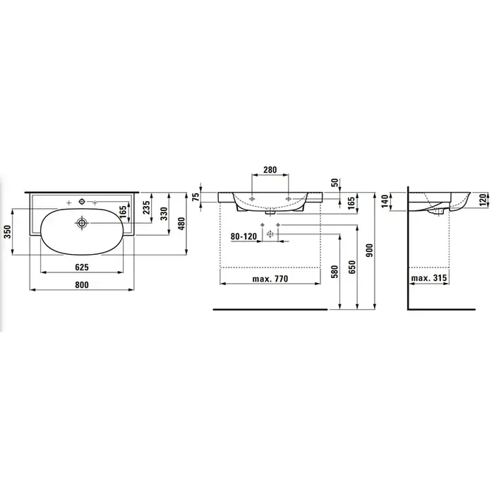 Laufen New Classic Раковина накладная 80х48х7.5см, с 3 отв., без перелива, с покрытием LCC Clean Coat, цвет: белый