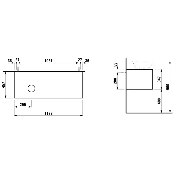 Laufen New Classic База под раковину подвесная раковина слева , 1180х450х350 мм, 1 ящик, цвет серый (для раковины 812852,812853)