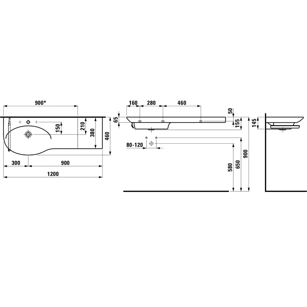 Laufen Palace Раковина 120х46хh15,5 cм, столешница слева, цвет белый 8.1670.5.000.104.1
