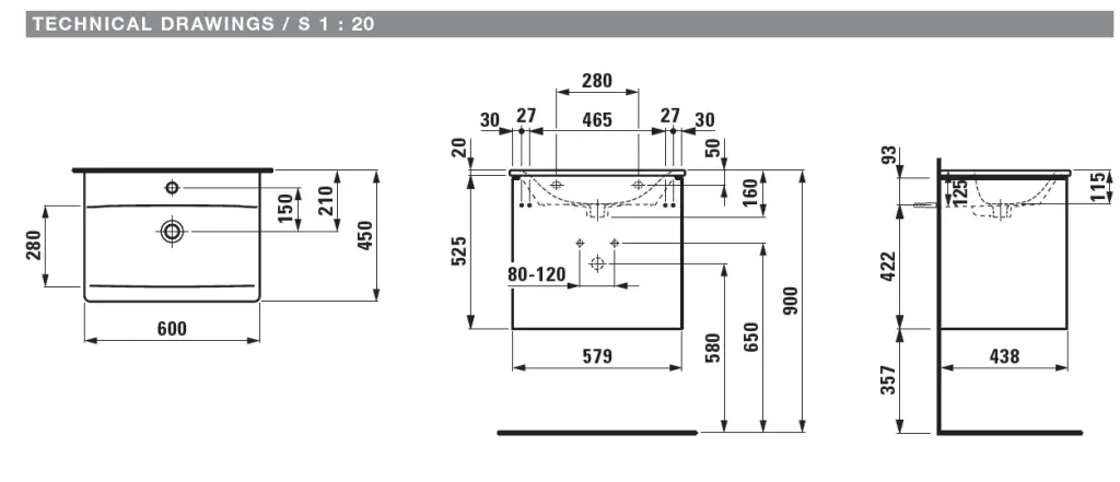 Laufen Palace Тумба с раковиной, 2 ящика 60х45х54h см, цвет: темный вяз 8.6070.2.263.104.1