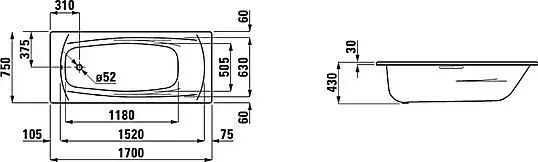 Laufen Palladium Ванна стальная 170х75 см, цвет белый 2.2511.3.000.040.1