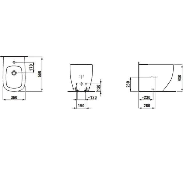 Laufen Palomba Биде напольное 56x36xh43 см, с 1 отв. под смеситель, цвет белый 8.3280.1.000.304.1