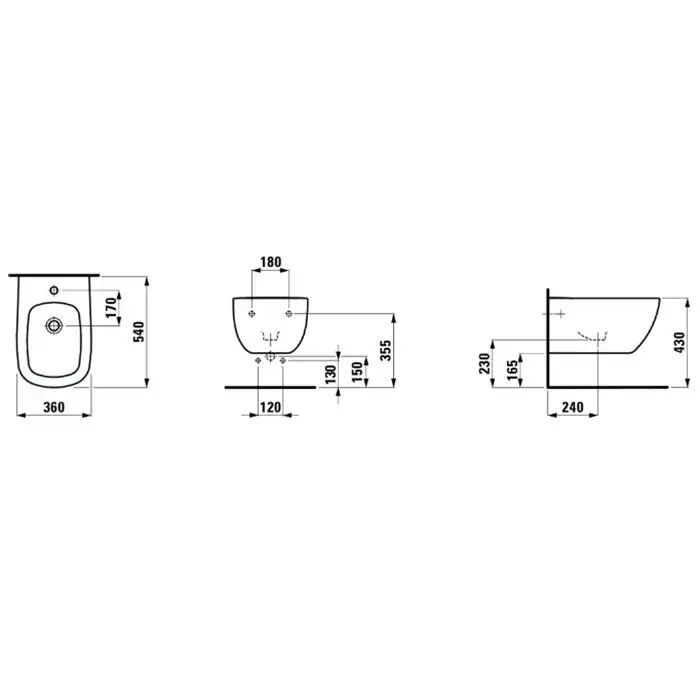 Laufen Palomba Биде подвесное 54х36хh26,5 cм, с 1 отв. под смеситель, цвет белый 8.3080.1.400.304.1
