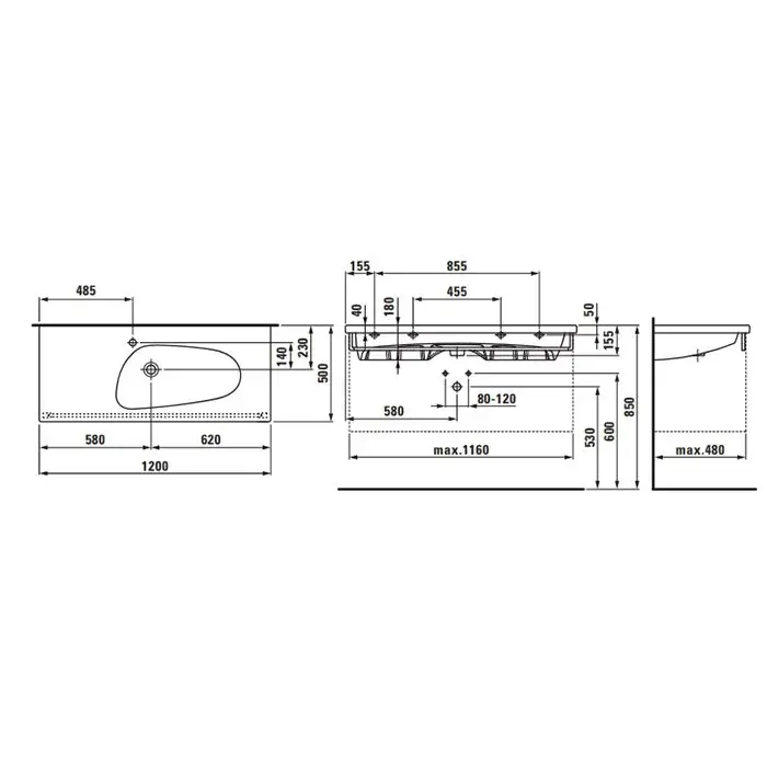 Laufen Palomba Раковина 120х50хh4 см, с 1 отв., цвет белый 8.1480.6.000.104.1