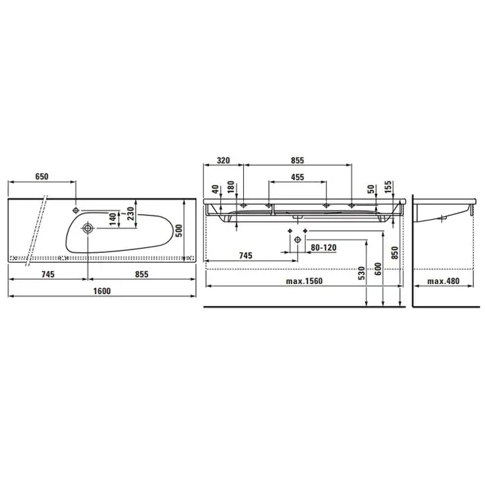 Laufen Palomba Раковина 160х50хh4 cм, полка слева, цвет белый 8.1480.8.000.109.1