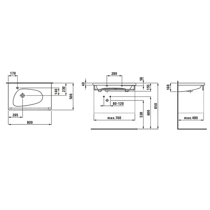 Laufen Palomba Раковина 80х50хh4 cм, без отв. под смеситель, цвет белый 8.1480.4.000.109.1