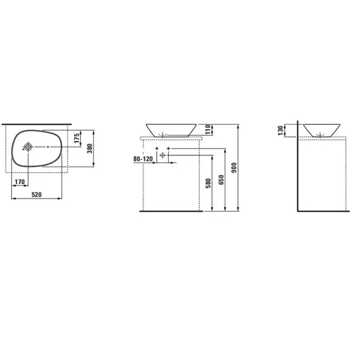 Laufen Palomba Раковина-чаша 520х380х130мм без перелива, без отв. под смеситель, с покр. LLC, цвет: белый