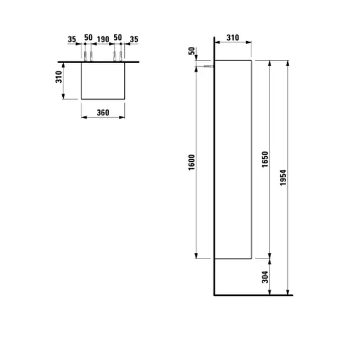 Laufen Palomba Шкаф подвесной,36х31хh165 см, с 1 дверцей, DX, цвет белый матовый 4.0675.2.180.220.1