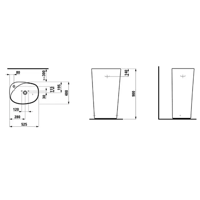 Laufen Palomba Свободностоящая раковина 52,5х40х90 см, цвет белый 8.1180.3.000.104.1