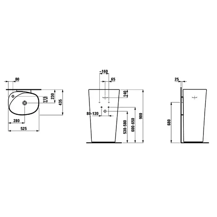 Laufen Palomba Свободностоящая раковина 52,5х43,5х90 см, с 1 отв., цвет белый 8.1180.4.000.104.1