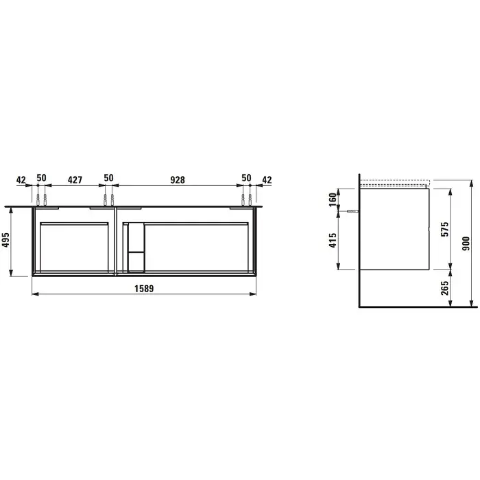 Laufen Palomba Тумба под раковину 814808, 158,5х49,5хh59 см, цвет белый матовый 4.0740.4.180.220.1