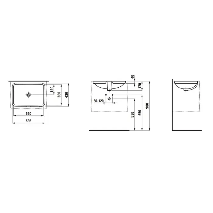 Laufen Pro Раковина 59,5х43хh17 см, без отв., под смеситель, цвет: белый 8.1196.3.000.109.1