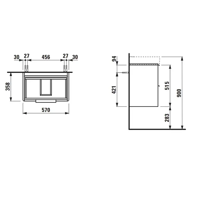 Laufen Pro База с раковиной, 47х27,5х60,5 см., подвесная sx, полки справа, 1 дверка, цвет: белый глянцевый