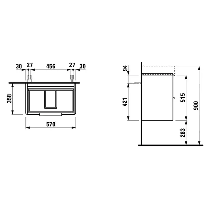 Laufen Pro База с раковиной, 47х27,5х60,5 см., подвесная sx, полки справа, 1 дверка, цвет: белый глянцевый