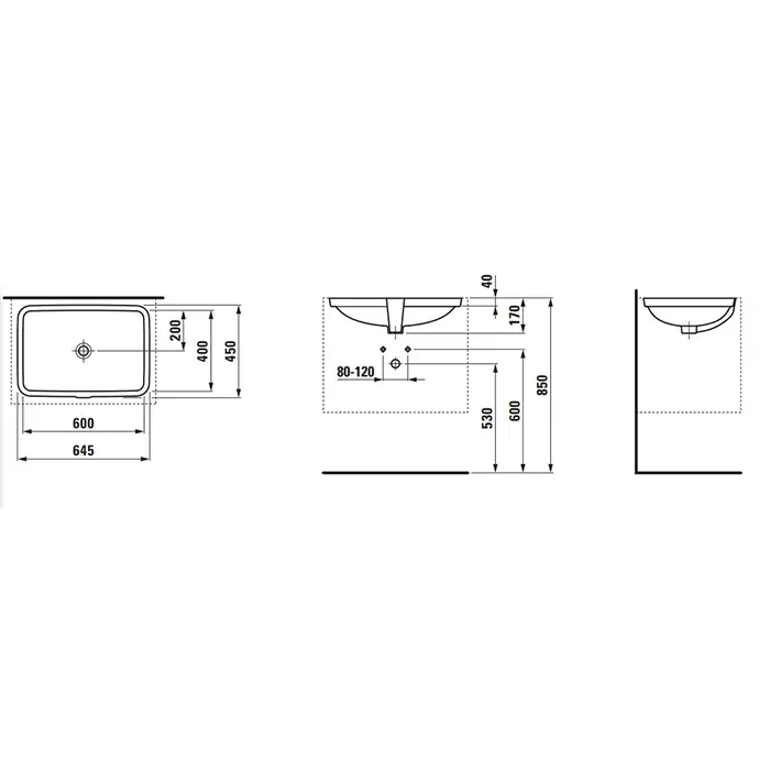 Laufen Pro S Раковина 60x40xh17 см, встраиваемая снизу, c переливом, цвет: белый 8.1196.9.000.109.1