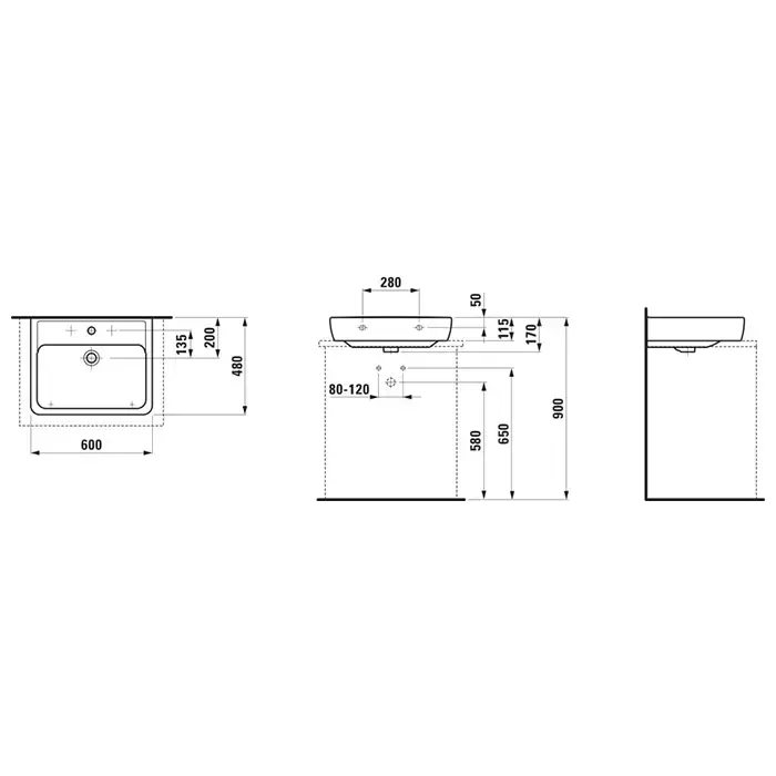 Laufen Pro S раковина для установки на поверхность, 600x480x115 мм, отверстие для смесителя по центру, цвет белый