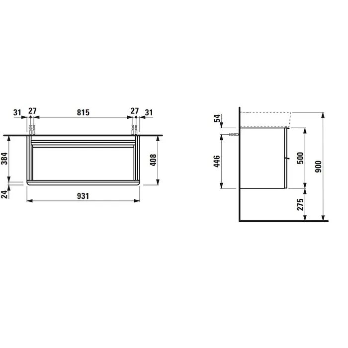 Laufen Pro База с раковиной, 47х27,5х60,5 см., подвесная sx, полки справа, 1 дверка, цвет: белый глянцевый