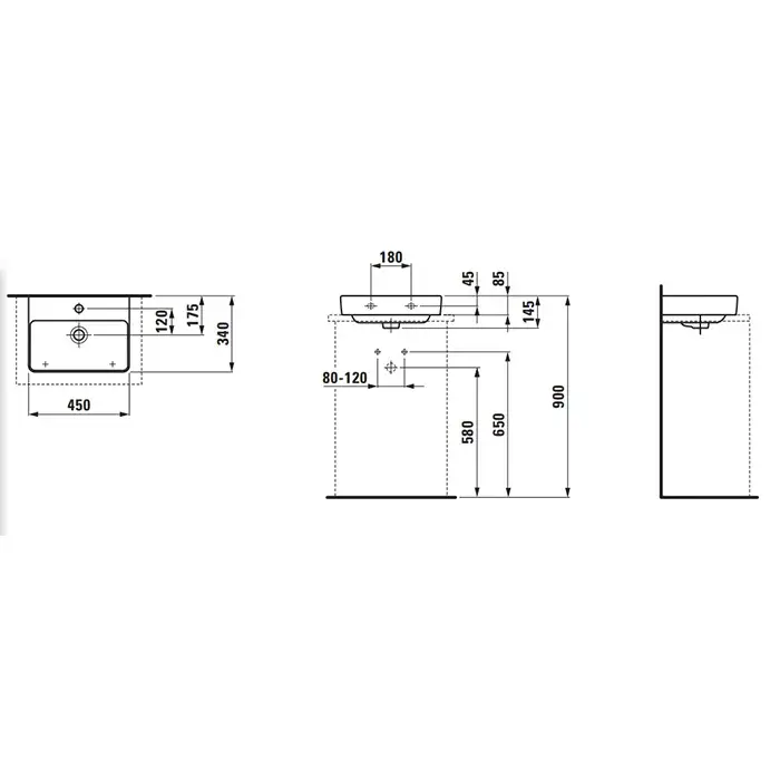 Laufen Pro S Раковина-мини 45х34хh8,5 см, без отв., для смес., цвет: белый глянц. 8.1696.1.400.109.1