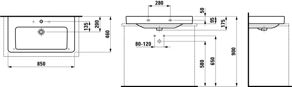 Laufen Pro S Раковина накладная прямоугольная на 1 отв. 86х46х17h см, цвет: белый 8.1696.5.000.109.1