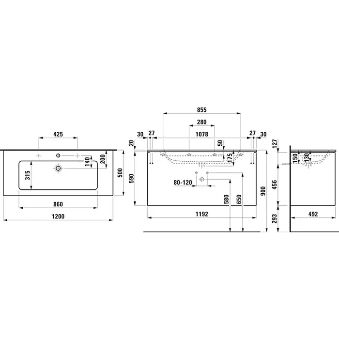 Laufen Pro S Раковина, шкафчик под раковину 120x50xh61 см, цвет: белый глянц. 8.6496.3.261.104.1