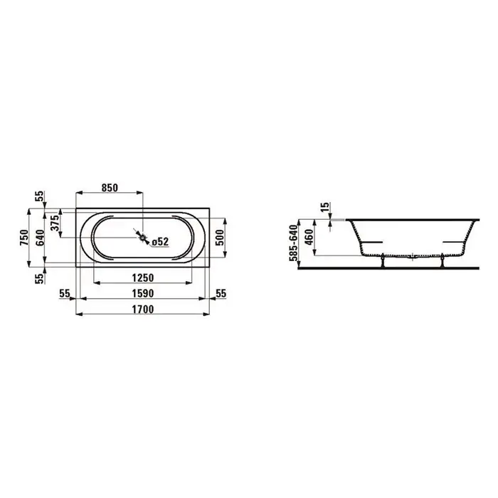 Laufen Pro Ванна 170x75 см, Drop-in прямоугольная, материал Marbond, белая 2.4295.0.000.000.1