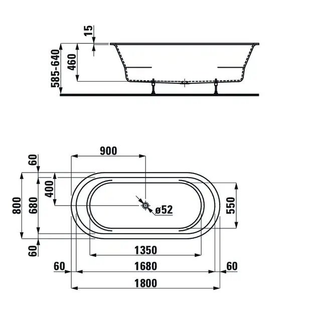 Laufen Pro Ванна 180x80хh64 см, врезная овальная с ножками, Marbond белый 2.4195.0.000.000.1