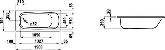 Laufen Pro Ванна стальная 150х70 см, цвет белый 2.2195.3.000.040.1