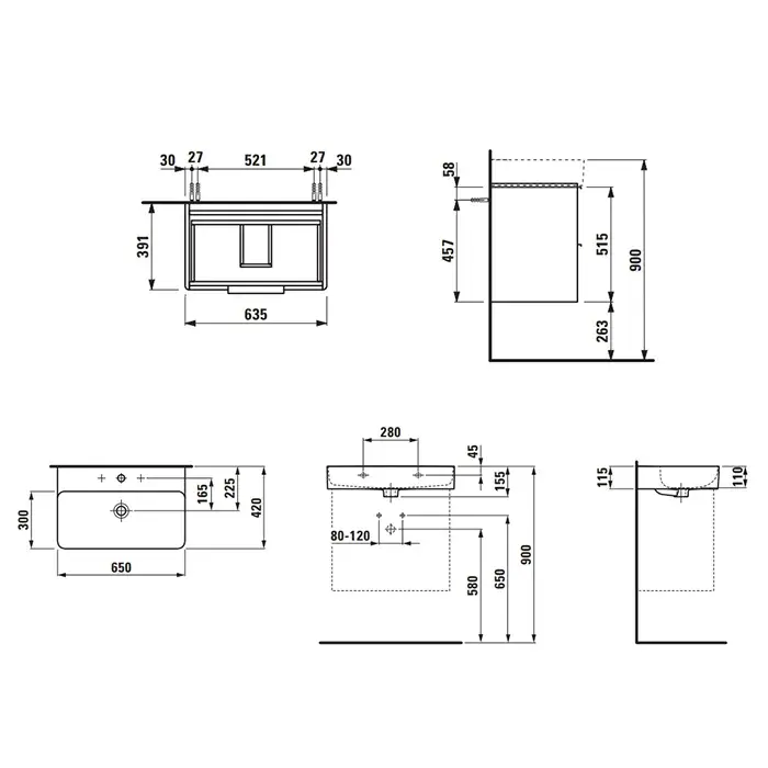 Laufen Val База под раковину подвесная 63,5х39хh53 см, цвет: белый матовый 4.0231.2.110.260.1