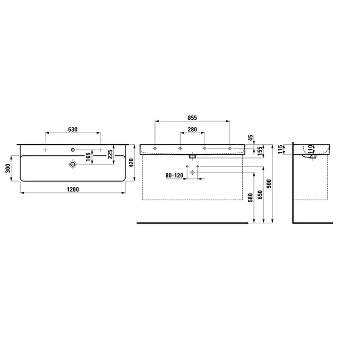 Laufen Val Раковина 120х42хh11,5 см, без отв. под смеситель, цвет белый 8.1028.9.000.109.1