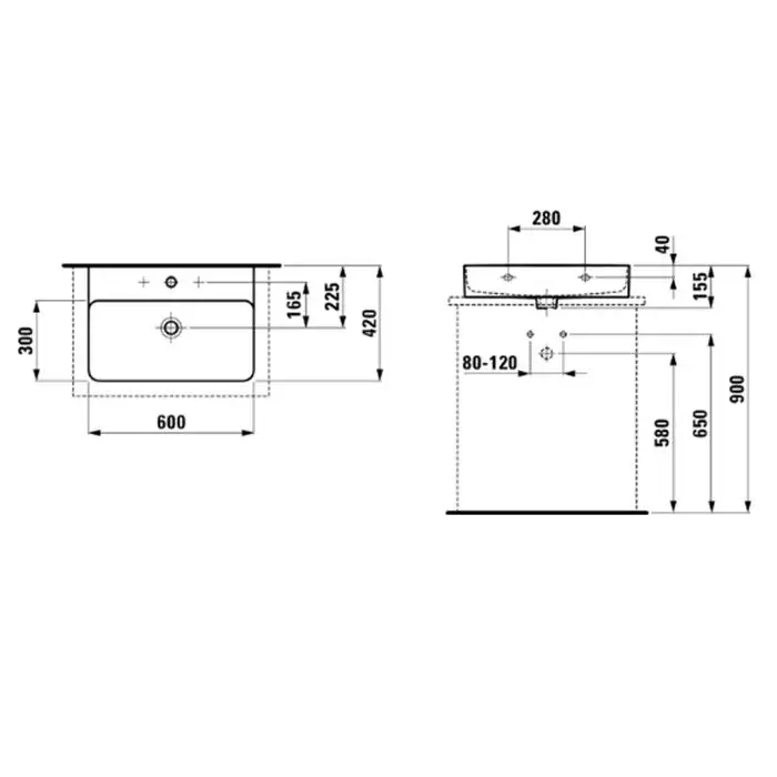 Laufen Val Раковина 60х42хh11,5 см, без отв., глазурь 2 стор, цвет белый 8.1628.3.000.109.1
