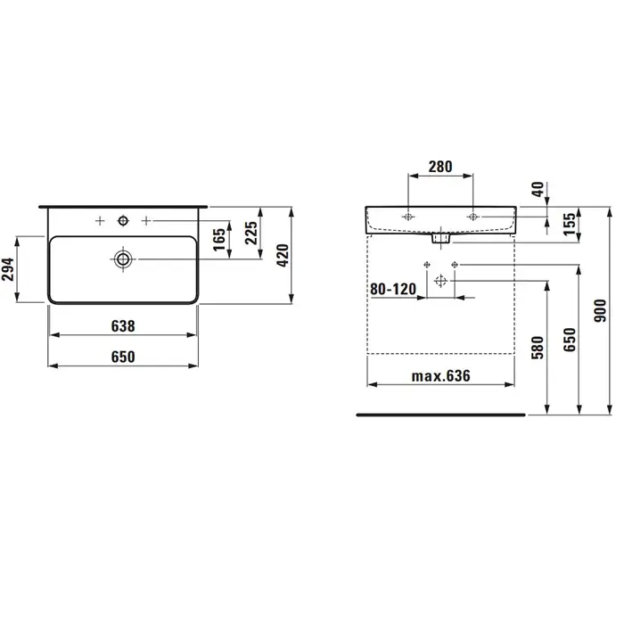 Laufen Val Раковина 65х42хh11,5 см, без отв. под смеситель, цвет белый 8.1028.4.000.109.1