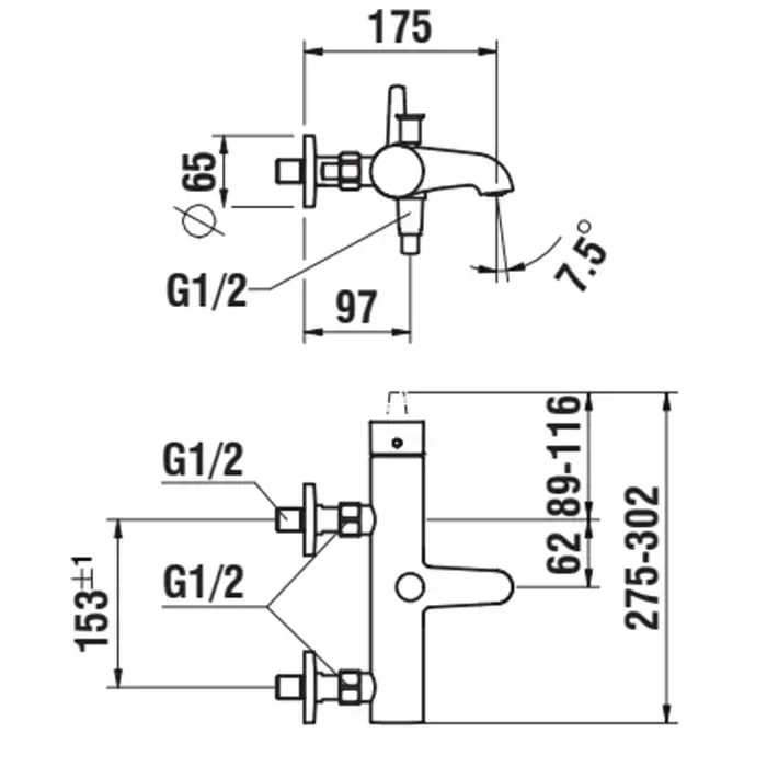 Laufen VAL Смеситель для ванны настенный, на 2 отв, с ручным душем, излив 175мм, цвет: хром