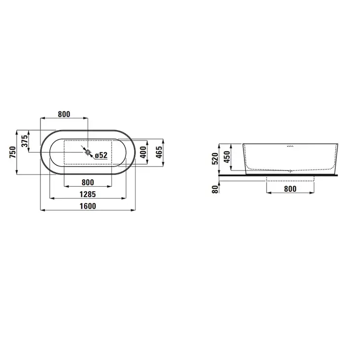 Laufen Val Ванна 160x75x45 см, свободностоящая, с слив-переливом, цвет белый 2.3028.2.000.000.1