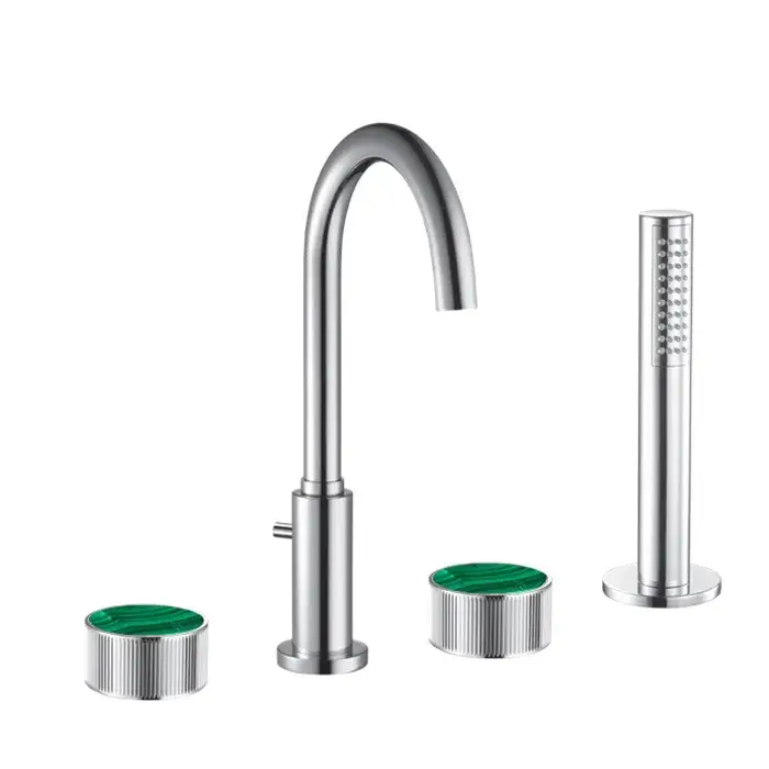 Maier Bespoke Смесит. на борт ванны, на 4 отв., излив 17,5 см, цвет: хром/malachite 82 714J CR R ML