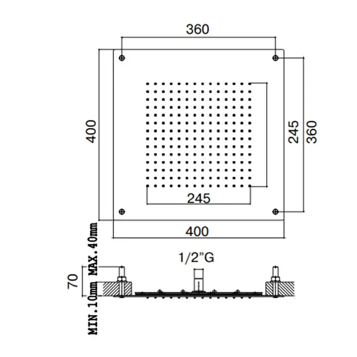 Maier Hydrotherapy Верхний душ 40х40 см, потолочный, цвет: хром 80 K400CR