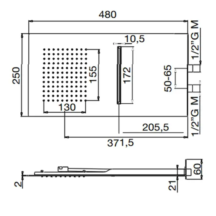 Maier Hydrotherapy Верхний душ 48х25 см, настенный, тропический дождь/каскад, цвет: хром 60 C402CR